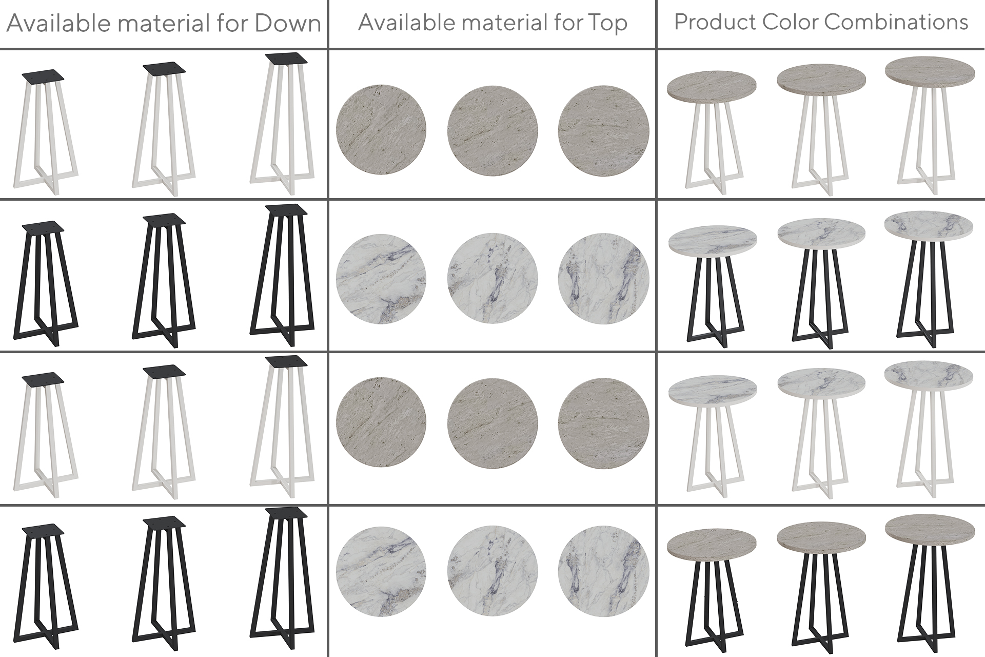 Rich Combination Possibilities: Customizable design with travertine or white marble-patterned surfaces and black or white metal frame alternatives.