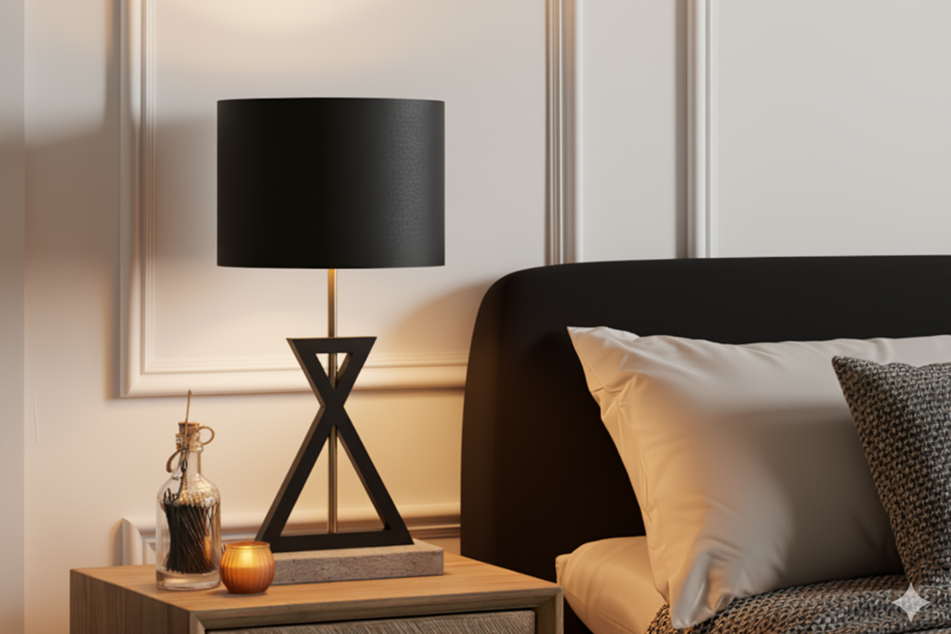 Softened Light Atmosphere: Its black fabric shade filters the light, creating a glare-free ambiance ideal for reading and resting hours.