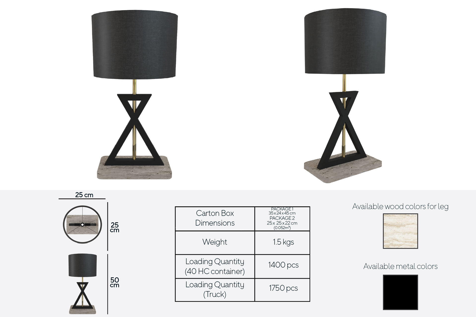 Sculptural Leg Design: Two thin metal triangles intersecting at the center grant the lamp both a lightweight appearance and a rigid stance.