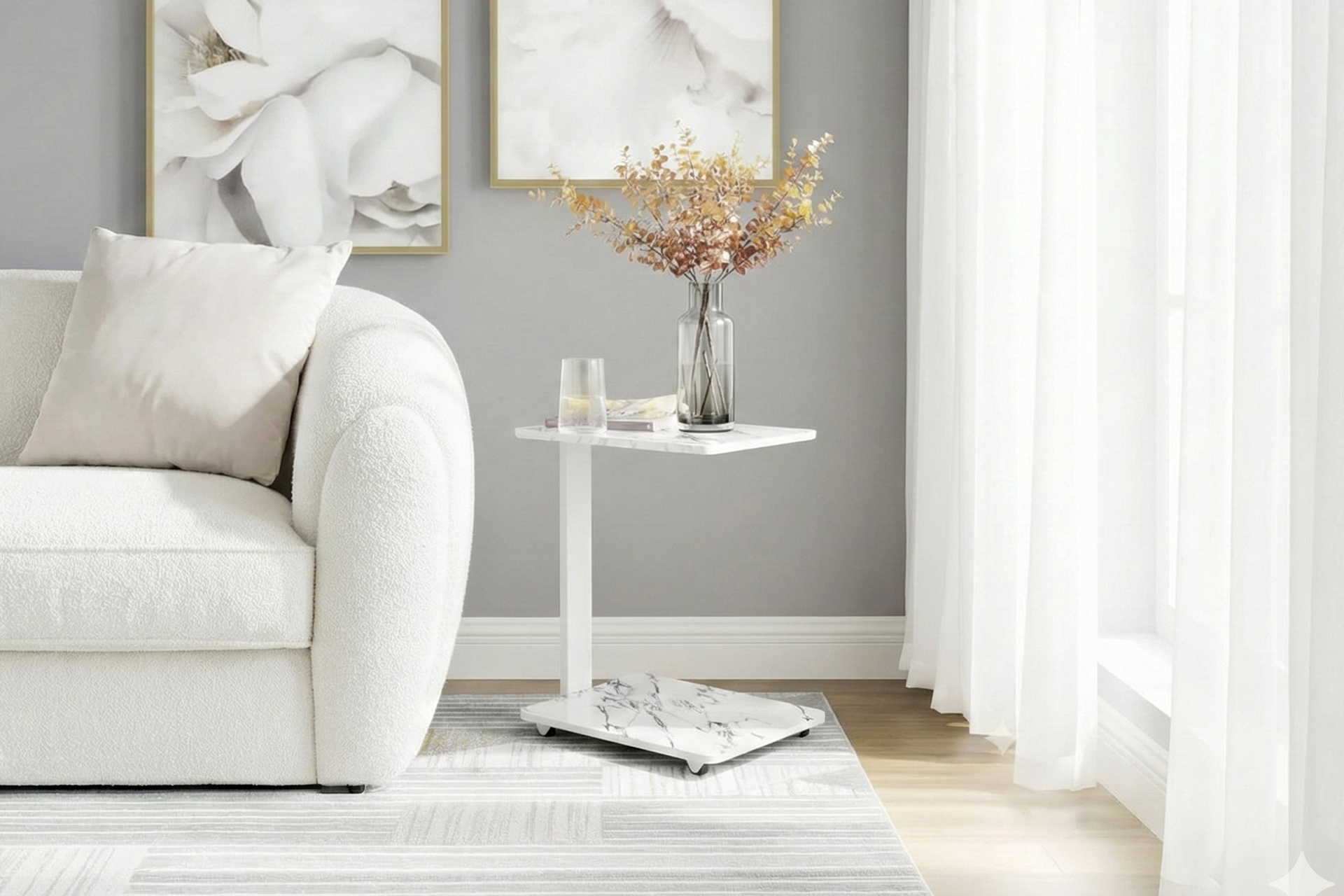 C-Valen Yan Sehpa, günlük yaşamın dinamizmine uyum sağlamak ve dar alanlarda maksimum verim sunmak amacıyla ileri mühendislikle tasarlanmıştır. İsmini karakteristik ‘C’ tipi profil yapısından alan bu model, sehpanın alt tablasının koltuk veya kanepelerin altına girmesine olanak tanır. Bu sayede, dinlenirken içeceğinize, kitabınıza veya bilgisayarınıza uzanmak için yerinizden kalkmanıza gerek kalmaz.