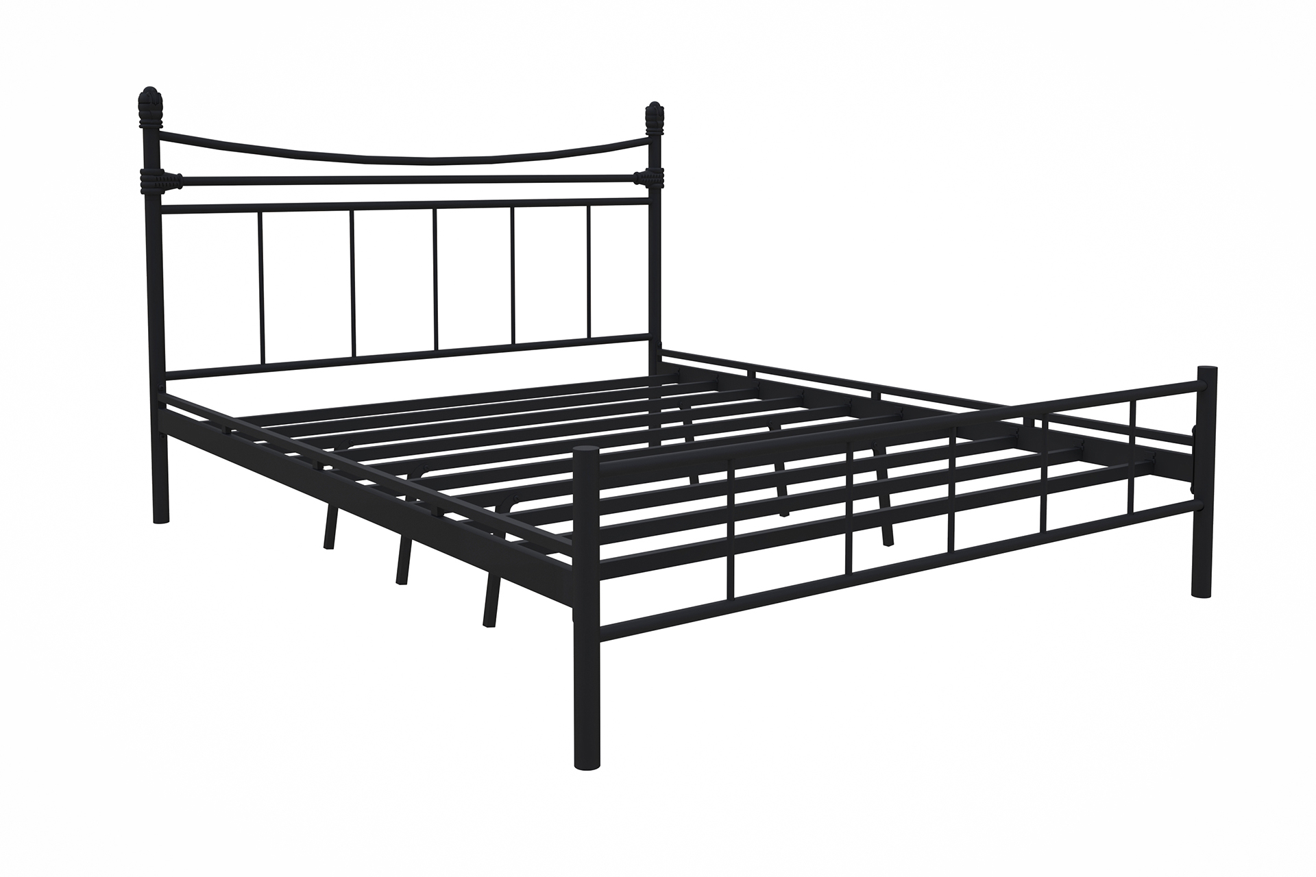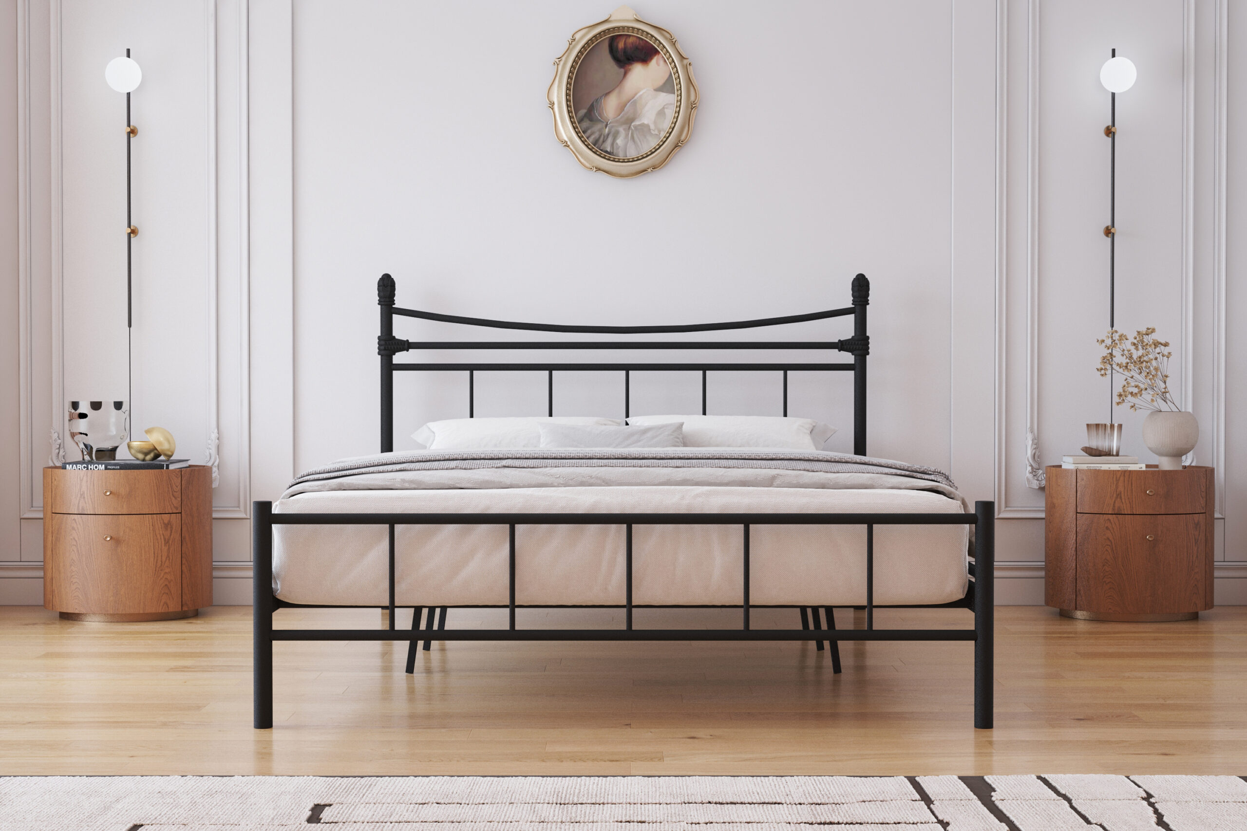Liberty Metal Karyola, klasik mobilya formlarını modern üretim teknolojisiyle yeniden yorumlayan özel bir modeldir. Hem başlık hem de ayak ucu panellerinde yer alan kavisli üst hatlar, karyolaya yumuşak ve davetkar bir görünüm kazandırırken; dikey parmaklık dizilimi mekana asil bir derinlik katar. Tamamen siyah elektrostatik boya ile kaplanmış gövdesi, her türlü tekstil ürünü ve dekorasyon tarzıyla kusursuz bir uyum sergiler.