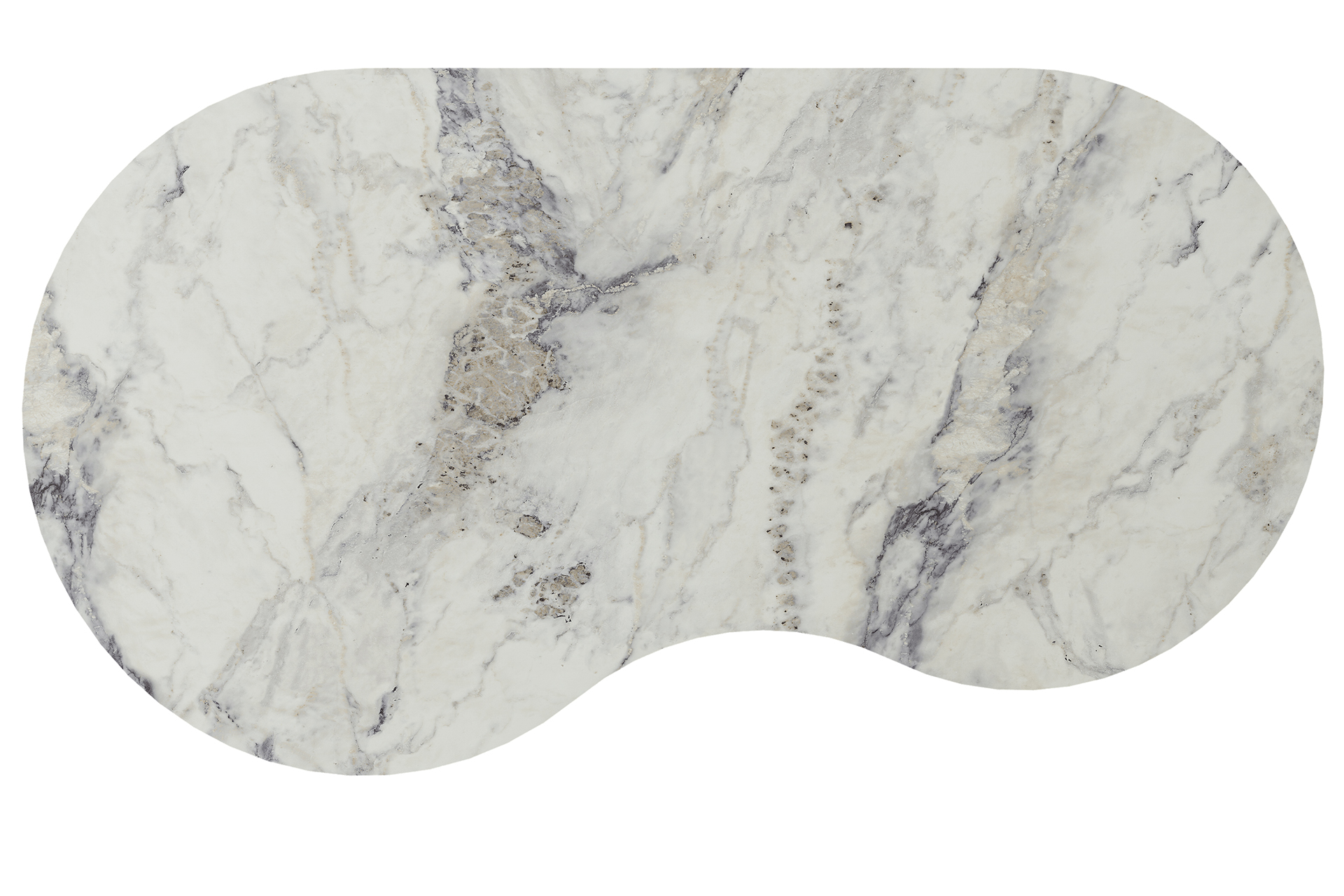 Asimetrik Amorf Yüzey: 130 cm uzunluğundaki geniş üst panel, doğadan ilham alan kavisli yapısıyla mekana organik bir hava katar ve her açıdan farklı bir perspektif sunar.