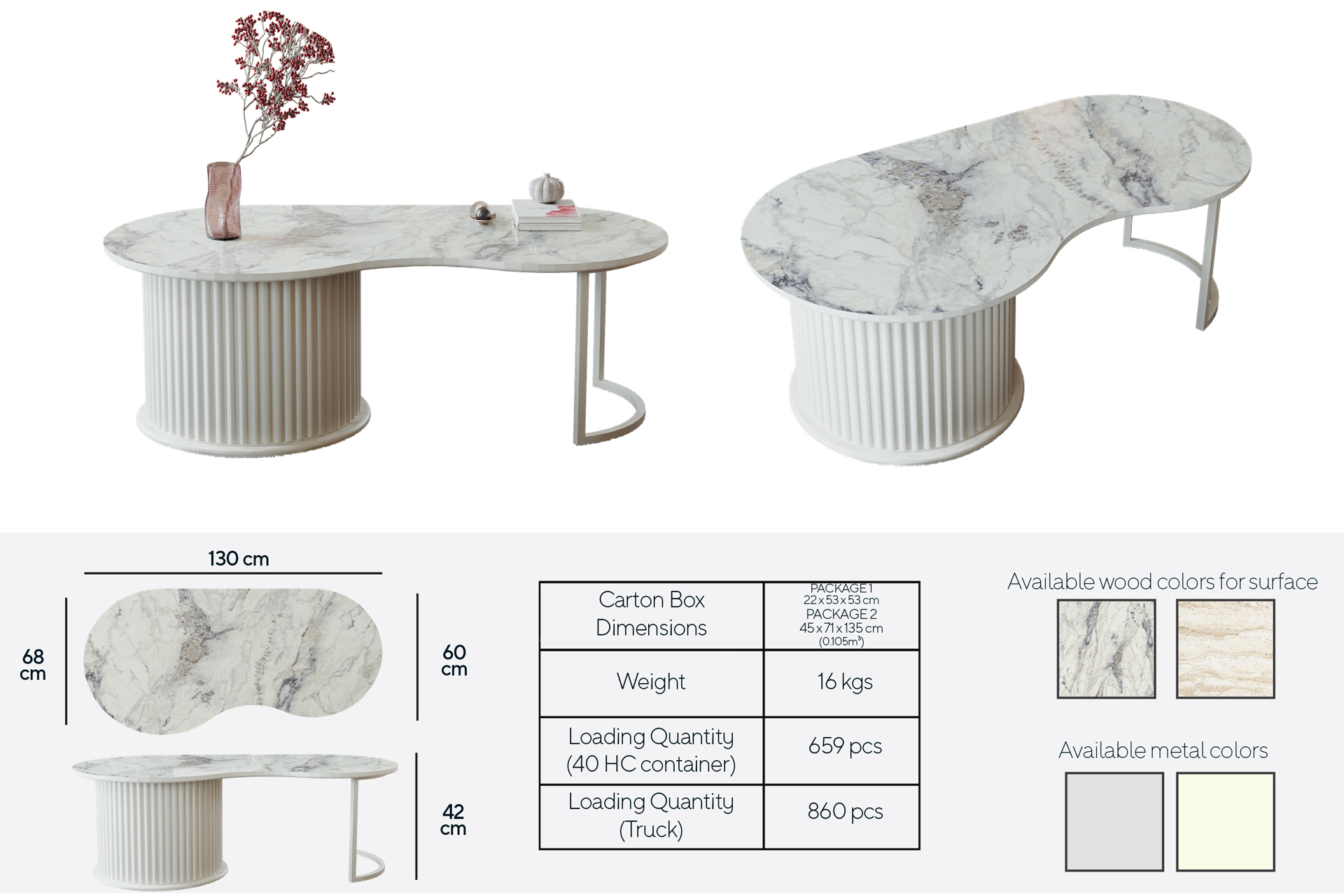 Luna Bohem Orta Sehpa, alışılmış keskin hatların dışına çıkarak yaşam alanınıza yumuşaklık, akışkanlık ve sanatsal bir derinlik katmak için tasarlanmıştır. İsmini ayın doğal evrelerinden ve bohem yaşam stilinin özgürlüğünden alan bu model, bir mobilyadan çok odanızın merkezinde duran çağdaş bir heykel işlevi görür.