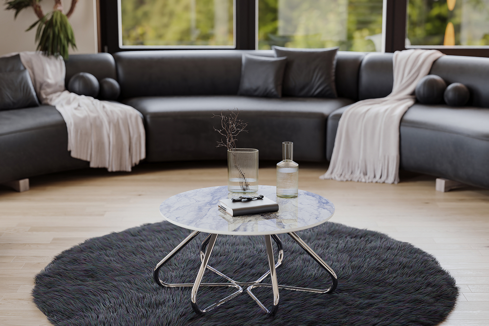 Heykelsi Metal İskelet: Birbirine kenetlenen kavisli metal profiller, sehpanın dengesini kusursuzlaştırırken her açıdan farklı ve estetik bir perspektif sunar.