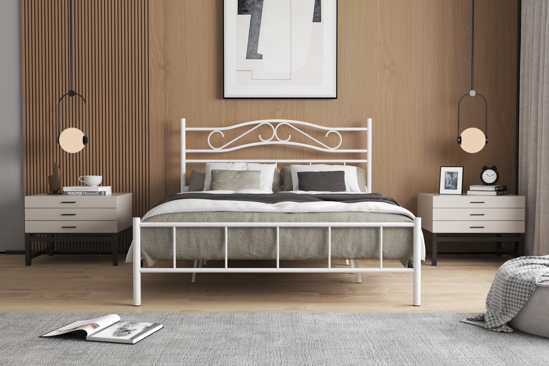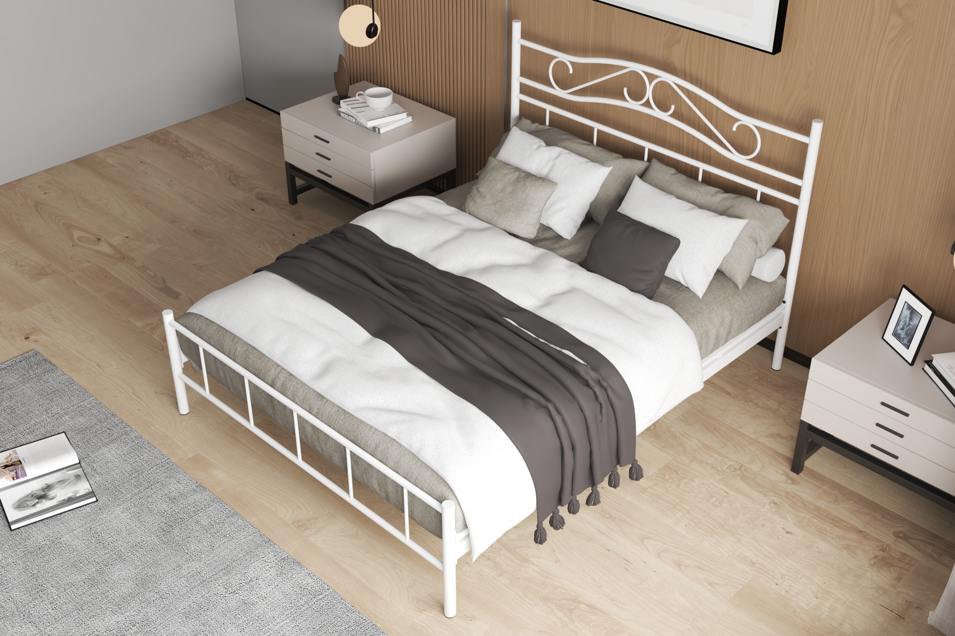 Dekoratif ve Sağlam Başlık: Kavisli başlık tasarımı, yastıklar için güvenli bir destek sunarken odanın dekorasyonunu bir üst seviyeye taşır.