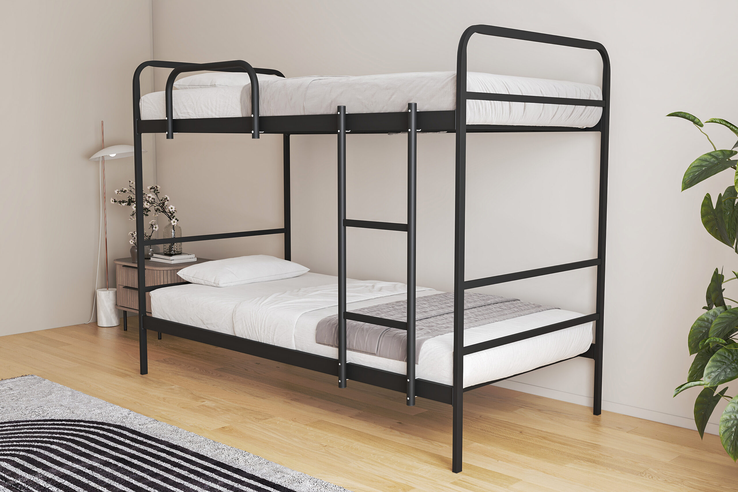 Yüksek kaliteli ve kalın etli yuvarlak boru profillerden imal edilen Thor, en hareketli kullanım senaryolarında dahi sessizliğini ve dengesini korur. Gövdeye entegre edilen dikey merdiven yapısı, ranza kapladığı alanın dışına taşmayarak dar odalarda maksimum yer tasarrufu sağlar. Üst katta yer alan emniyet bariyeri, yatak boyunu tam kapsayacak şekilde dizayn edilmiştir; bu da kullanıcıya gece boyunca huzurlu bir uyku alanı yaratır.